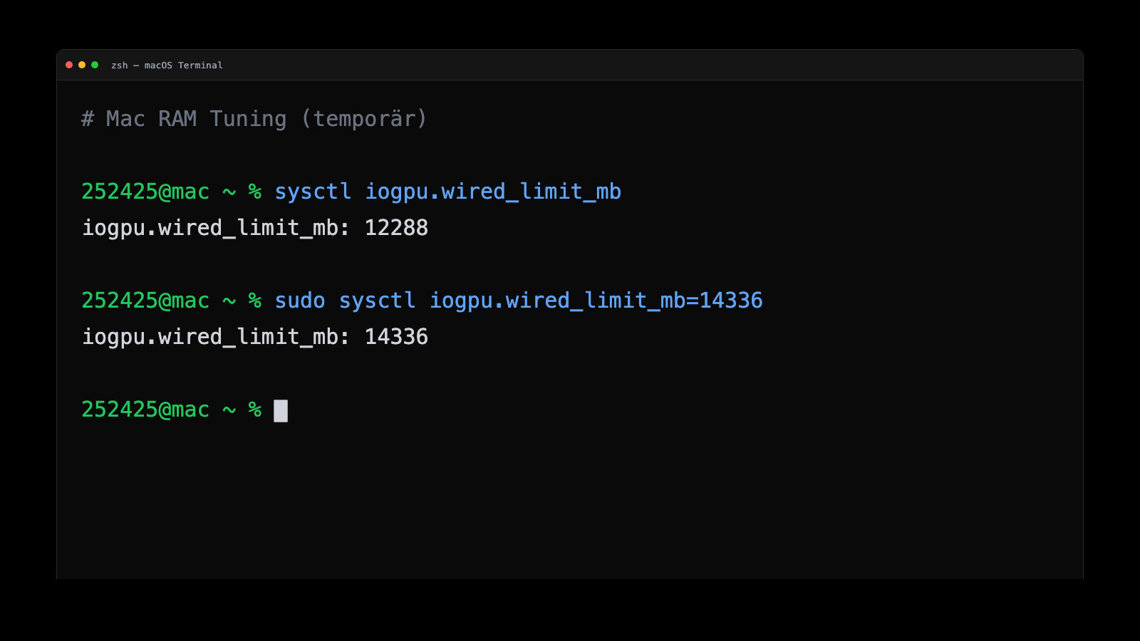 iogpu.wired_limit_mb beeinflusst, wie viel Speicher die GPU als “wired memory” reservieren darf.